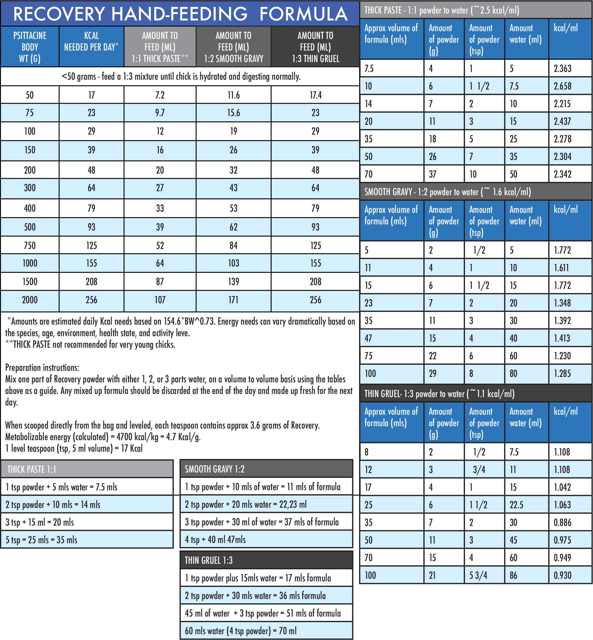 Harrison’s Handfeeding Formulas Feeding Charts