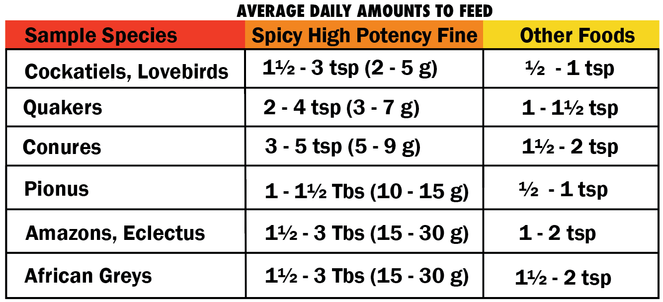A SPICY FIRST-USE FORMULA FOR SMALL TO MEDIUM BIRDS