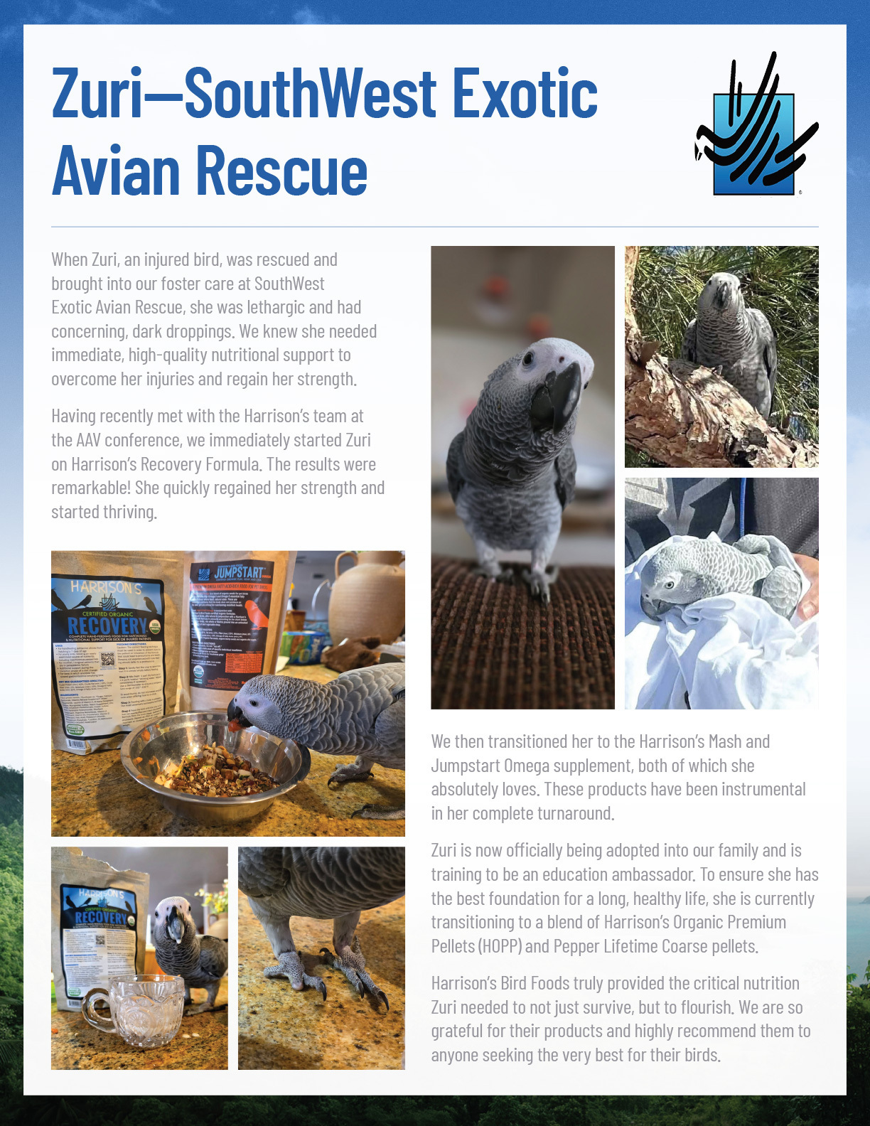 Harrison’s Bird Foods doesn’t just feed our birds; it fuels their second chances at life. Thank you for helping us give these amazing creatures the healthy, happy futures they deserve.”